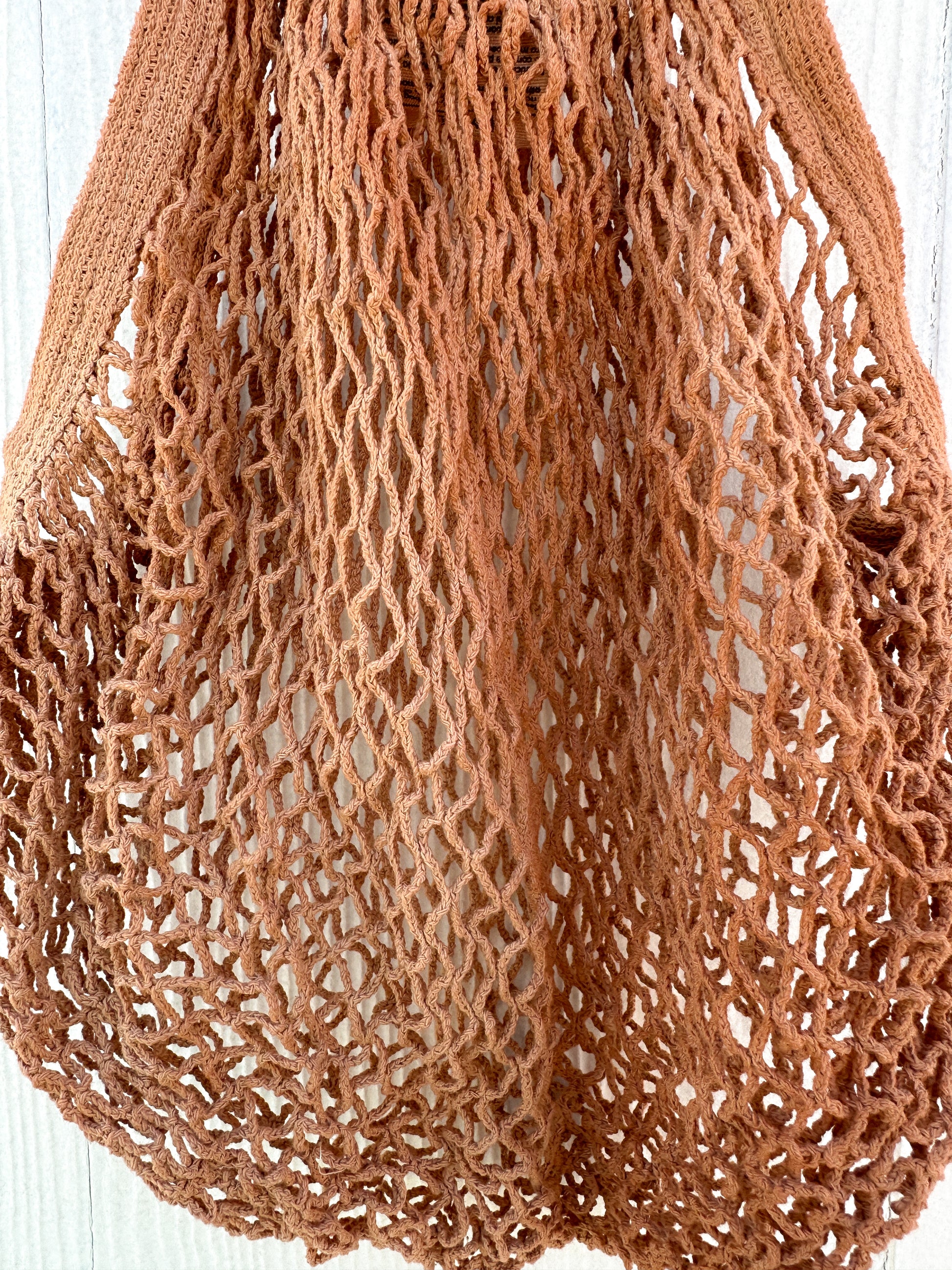 Naturally dyed with cutch, each Nai Nao Grocery Bag has slight variations in color. Its warm pinkish brown color reminds us of sliced lotus root floating in a big bowl of pork rib soup.